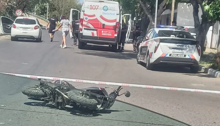 El siniestro ocurrió en el cruce de Libertador y Lateral de Circunvalación, donde una moto y un auto colisionaron cerca del mediodía.