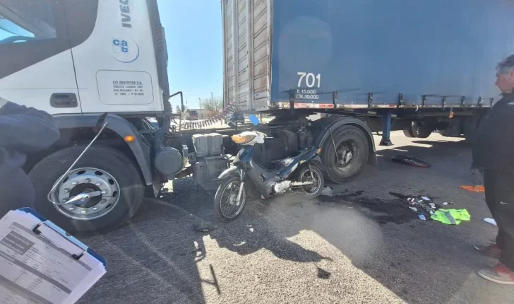 La colisión ocurrió cuando el camión, conducido por un hombre de 48 años de apellido Novillo, oriundo de Córdoba, no habría respetado un disco de “Pare” y se encontró con una moto Maverick 110cc que transitaba por avenida España de Sur a Norte.