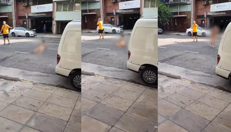 Un vecino de la cuadra filmó la caída de la víctima con su celular. En las imágenes se la ve tirada en el piso, semidesnuda. La mujer logró levantarse y pedir ayuda, mientras que un hombre que pasaba por la cuadra frenó el tránsito para evitar que fuera atropellada, ya que cayó en medio de la calle.