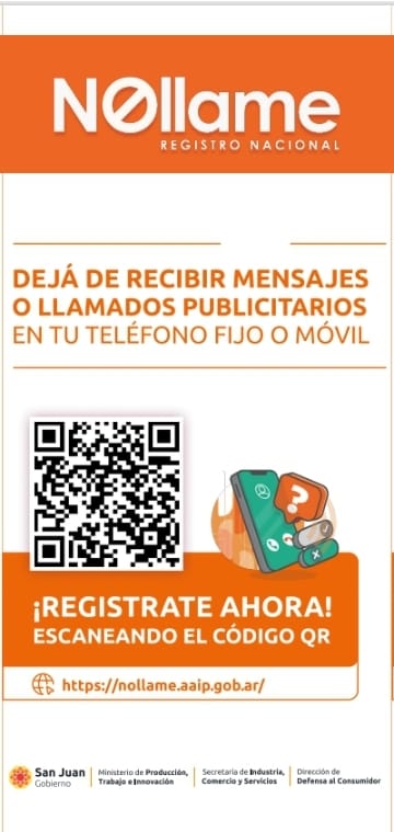 La inscripción es gratuita, tiene alcance en todo el país y permite bloquear llamadas, ofertas y mensajes en teléfonos fijos y celulares. En San Juan, la Dirección de Defensa al Consumidor brinda asesoramiento a los usuarios.