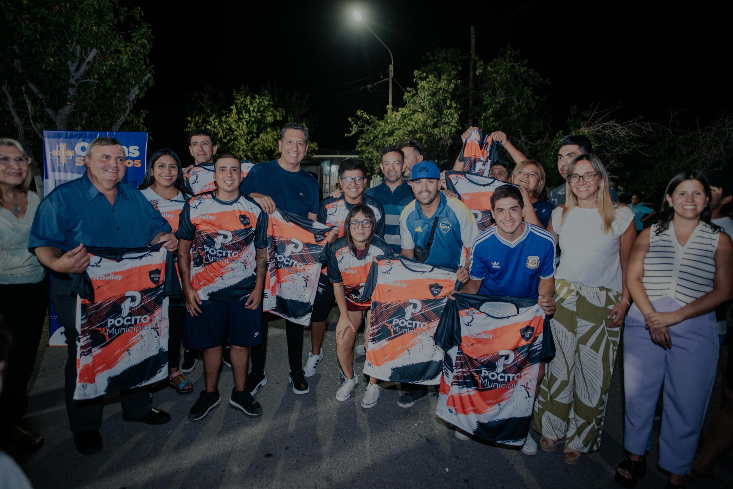 El intendente Aballay aprovechó la oportunidad para entregar un juego de camisetas al Club Atlético Lote 13.