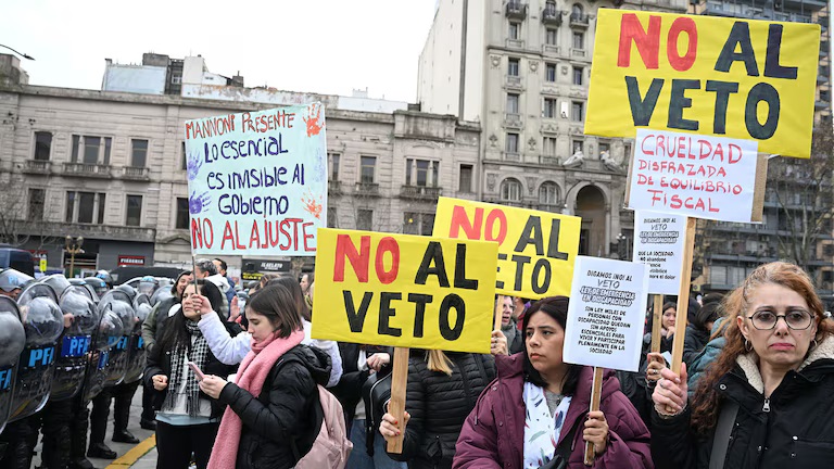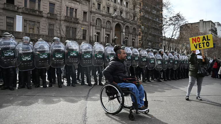 En este sentido, este martes se vivieron momentos de tensión en el centro de la Ciudad de Buenos Aires con empujones entre la Gendarmería y la Policía Federal con los manifestantes que pedían rechazar el veto a la ley de emergencia en discapacidad.