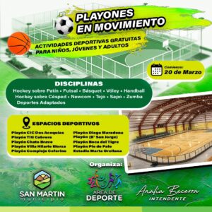 La Municipalidad de San Martín, a través de su Área de Deportes, pondrá en marcha el programa “Playones en Movimiento”, una iniciativa destinada a promover la actividad física en los distintos barrios del departamento.