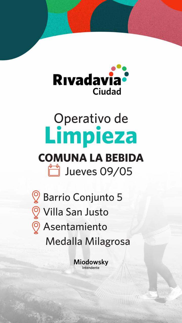La Municipalidad de Rivadavia ha programado dos operativos especiales de limpieza para la semana del 6 al 11 de mayo, en un esfuerzo por mantener la higiene y salubridad de la ciudad.