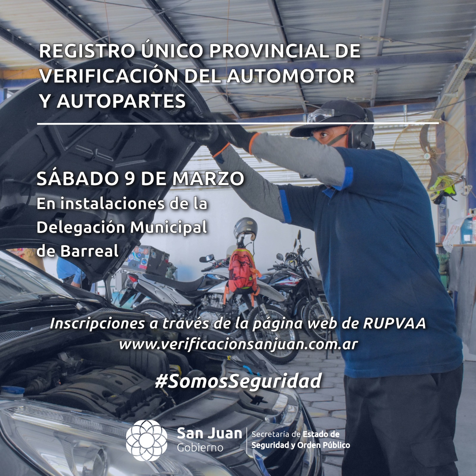 El próximo sábado 9 de marzo, se realizará un operativo en la Delegación municipal de Barreal, en el departamento Calingasta. Equipos de peritos y operativos estarán presentes para realizar verificaciones y grabado de autopartes.