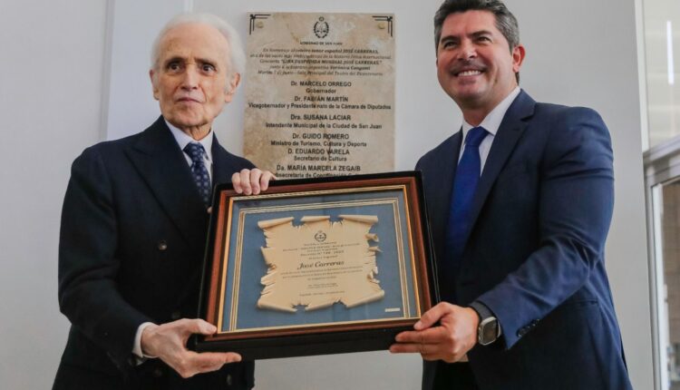 El homenaje se realizó en el Teatro del Bicentenario, donde el Gobierno de la Provincia descubrió una placa conmemorativa en honor al célebre cantante lírico. Además, se entregó la resolución de la Cámara de Diputados que declara de interés provincial el concierto “Gira Despedida Mundial José Carreras”.