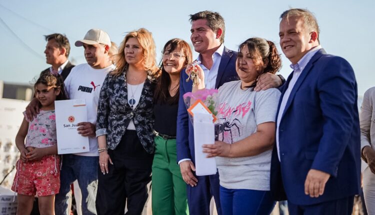 El gobernador estuvo acompañado por la directora del IPV, Elina Peralta; el ministro de Infraestructura, Agua y Energía, Fernando Perea; y la intendenta de Chimbas, Daniela Rodríguez, junto a otras autoridades que se sumaron para compartir la alegría de los flamantes vecinos.