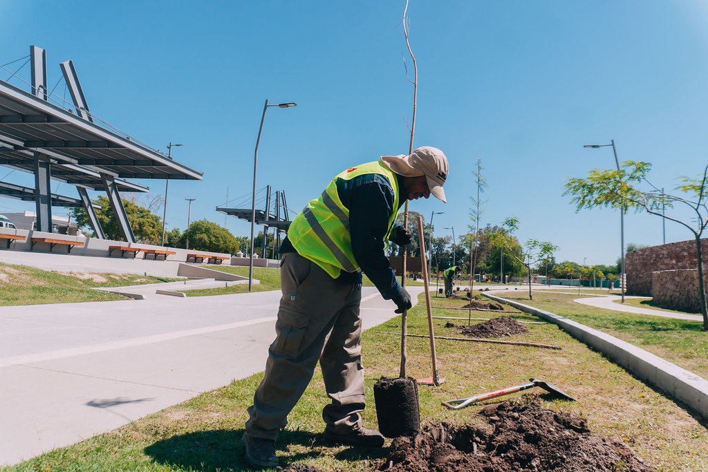 La Dirección de Espacios Verdes, dependiente del Ministerio de Infraestructura, Agua y Energía, avanza con la plantación de 100 nuevos árboles en el Parque Belgrano. La iniciativa forma parte del Plan de Reforestación del Eje Cívico Cultural y busca reforzar el arbolado urbano, mejorar el entorno y promover el cuidado ambiental en espacios de uso comunitario.
