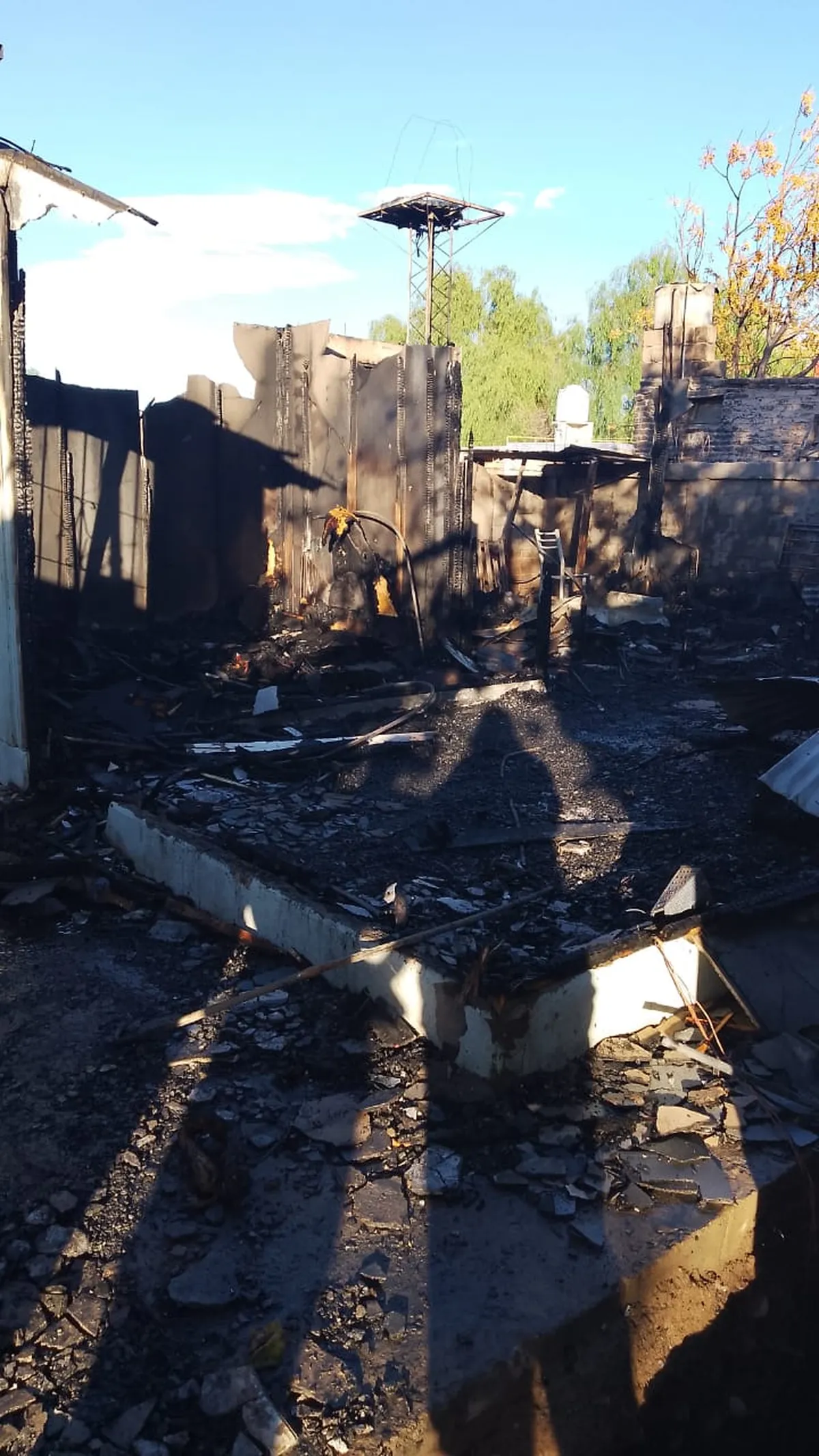 En el momento del incendio, la familia no se encontraba en casa. Ana vive con su pareja, su hijo de 5 años y un bebé de 1 año y 3 meses. Al regresar, se encontraron con un escenario desolador: la casa destruida, con apenas una pared en pie.