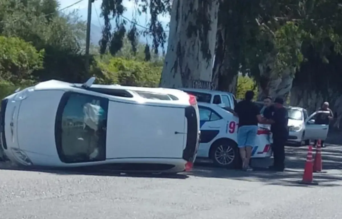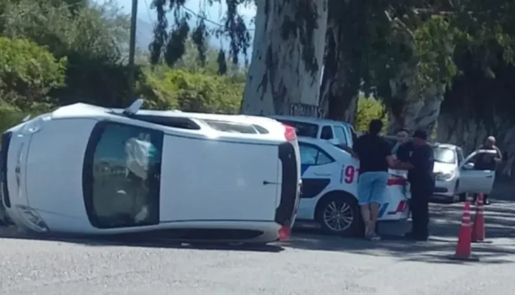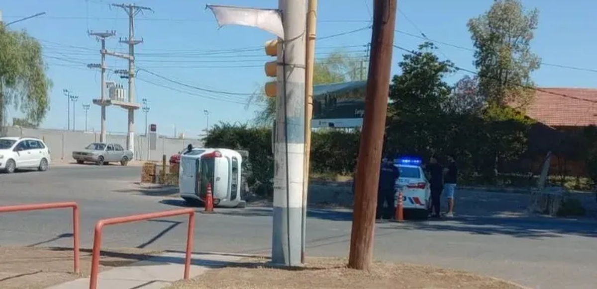 Un Fiat Palio protagonizó un espectacular vuelco este miércoles por la siesta en la intersección de Avenida Ignacio de la Roza y Rastreador Calivar, una de las zonas más transitadas de Rivadavia.