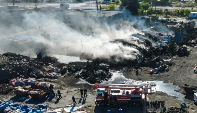 Más de 45 bomberos continúan trabajando en la zona debido a la combustión de materiales reciclables altamente inflamables.