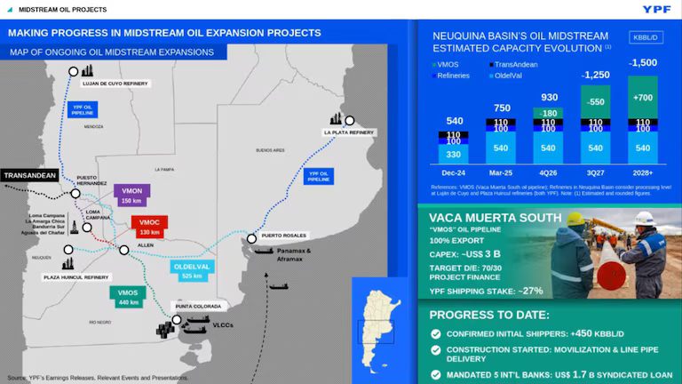 La envergadura del proyecto explica el interés de una amplia coalición empresarial. El consorcio está conformado por YPF, Chevron, Shell, Vista, Pluspetrol, Pan American Energy (PAE) y Pampa Energía, y representa a los principales operadores de Vaca Muerta. Según pudo confirmar este medio, además del crédito externo, se prevé una emisión adicional por USD 400 millones en el mercado de capitales local durante el próximo año y aportes de capital de las compañías para completar el financiamiento.