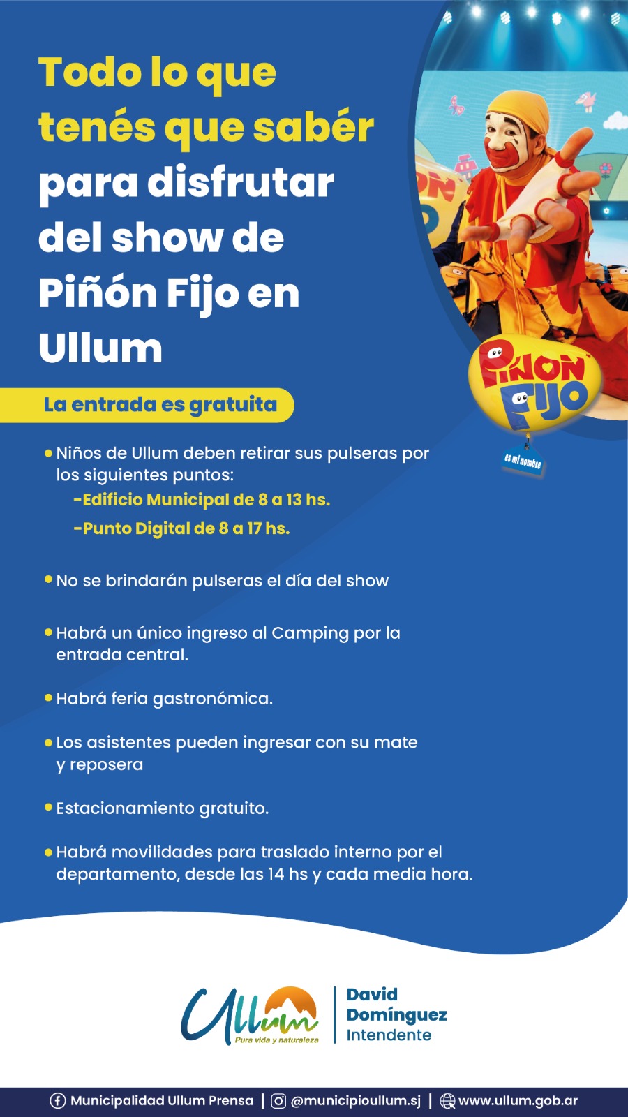 El reconocido artista infantil Piñón Fijo se presentará este sábado 9 de agosto en Ullum, en el marco del festejo municipal por el Día de las Infancias, organizado por la gestión del intendente David Domínguez.