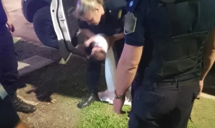 Policías salvan la vida de un bebé que vomitaba sangre en Pocito