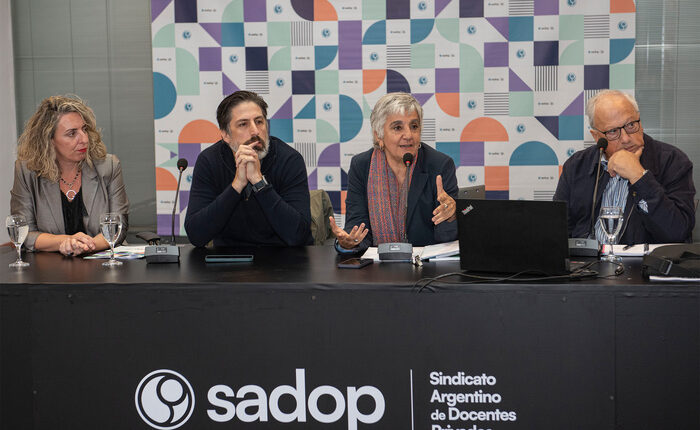 La presentación estuvo a cargo de la secretaria general de Sadop, Luz Marina Jaureguiberry; el director del Incape, Daniel Di Bártolo, y el exministro de Educación de la Nación y presidente del Consejo Académico de la UMET, Nicolás Trotta. Además, estuvieron presentes la rectora de la UMET, Gimena Vitali, integrantes del Consejo Directivo de Sadop, congresalas y congresales nacionales, docentes de la diplomatura, representantes del Proyecto Umbral y el exsecretario general de Sadop, Mario Morant, entre otras y otros.