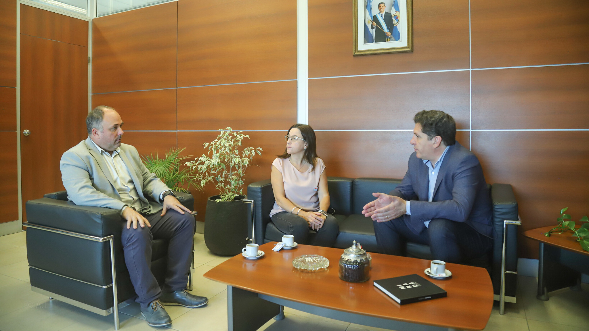 Unificar criterios para continuar con la ejecución de proyectos en conjunto, el ministro de Producción, Trabajo e Innovación, Gustavo Fernández, junto con el secretario de Agricultura, Ganadería y Agroindustria, Miguel Moreno, mantuvieron un encuentro con la directora del Instituto Nacional de Tecnología Agropecuaria (INTA) seccional San Juan, Mónica Ruíz, en la sala de situación de la cartera productiva. Además, celebraron el 68° aniversario de la prestigiosa entidad.
