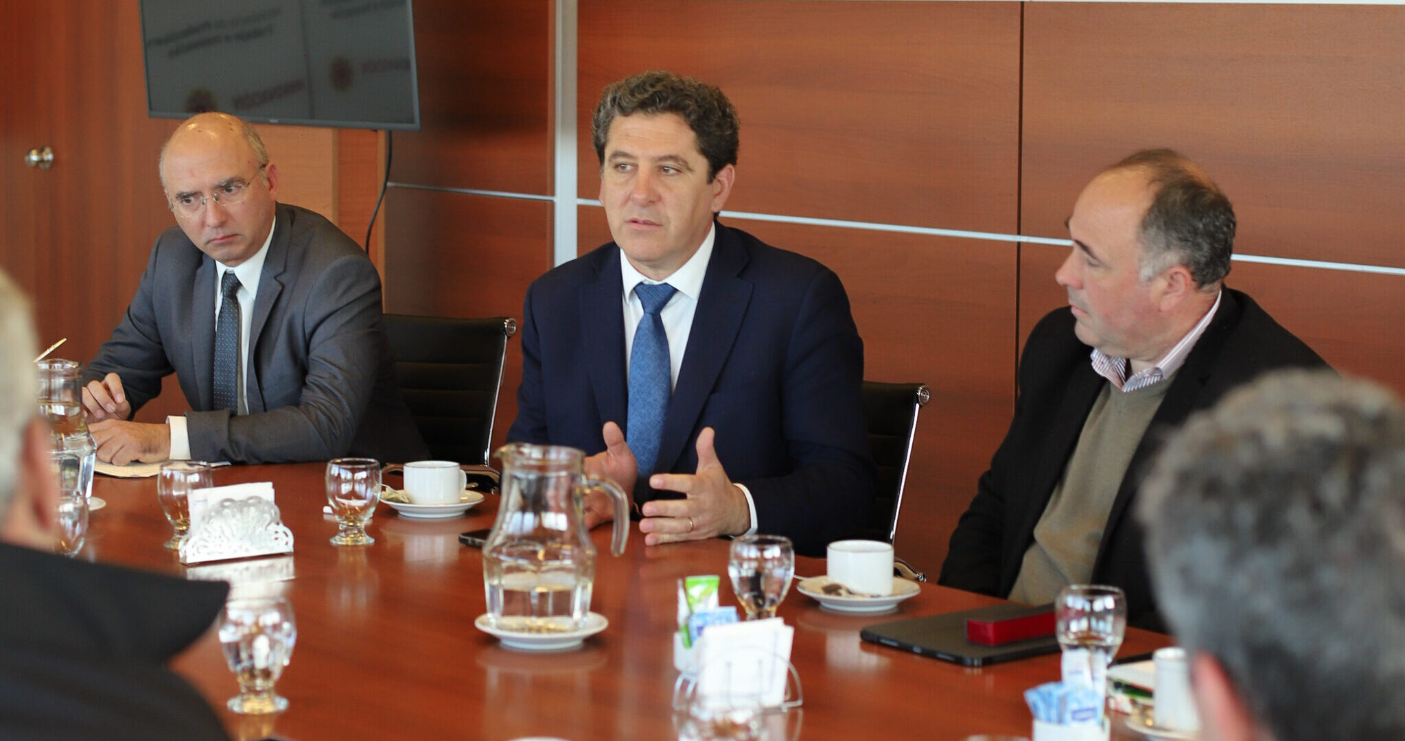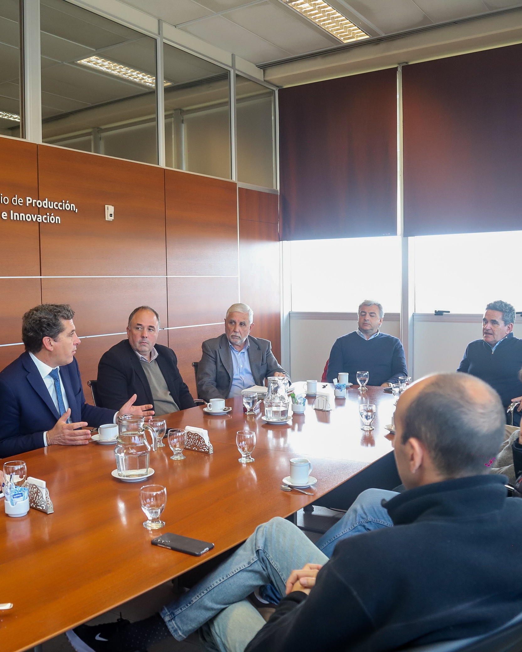La sala de reuniones del Ministerio de Producción, Trabajo e Innovación fue el escenario del encuentro entre representantes de la Cámara de Bodegueros, bodegas trasladistas y el ministro Gustavo Fernández, con el objetivo de analizar la coyuntura que atraviesa el sector y delinear políticas conjuntas para fortalecer uno de los pilares de la matriz productiva de la provincia. Acompañaron al ministro los secretarios de Agricultura, Ganadería y Agroindustria, Miguel Moreno; de Industria, Comercio y Servicios, Alejandro Martín; y el director de Desarrollo Vitivinícola, Juan Carlos Hidalgo.