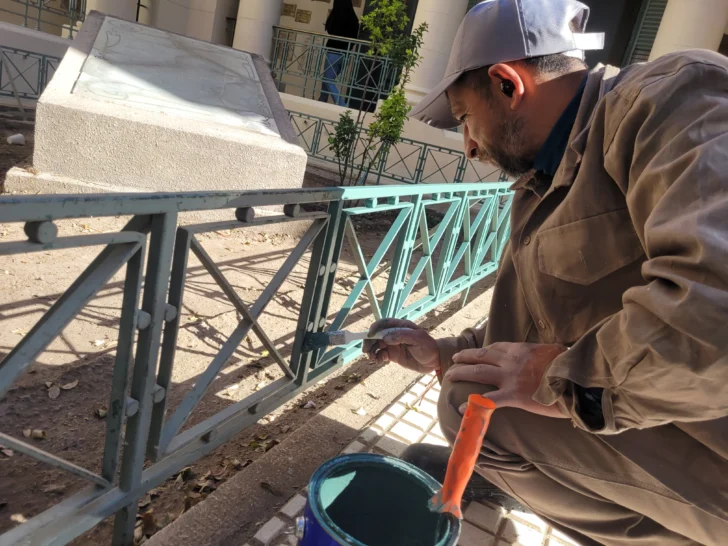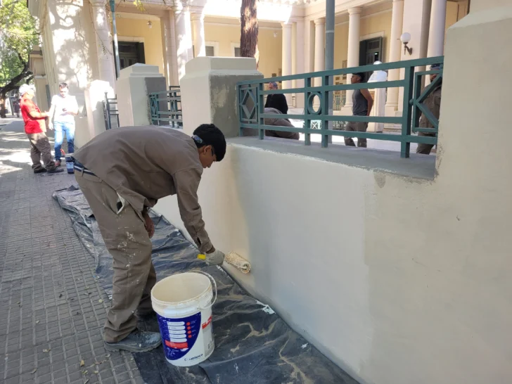 Los trabajos, que comenzaron este miércoles, están a cargo de la empresa CCS. Los obreros iniciaron tareas de raspado y pintura, devolviendo a la fachada su tono beige tradicional. Además, las rejas y celosías serán pintadas en verde claro, respetando la paleta de colores que caracterizó al inmueble en sus primeros años.