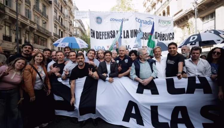 Uno de los rostros más visibles en la movilización fue el del gobernador bonaerense, Axel Kicillof, quien encabezó la columna del espacio que lidera, Movimiento Derecho al Futuro, en la Marcha Federal Universitaria.