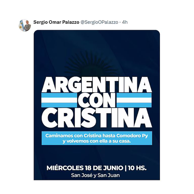 Sergio Palazzo llama a marchar con Cristina Kirchner