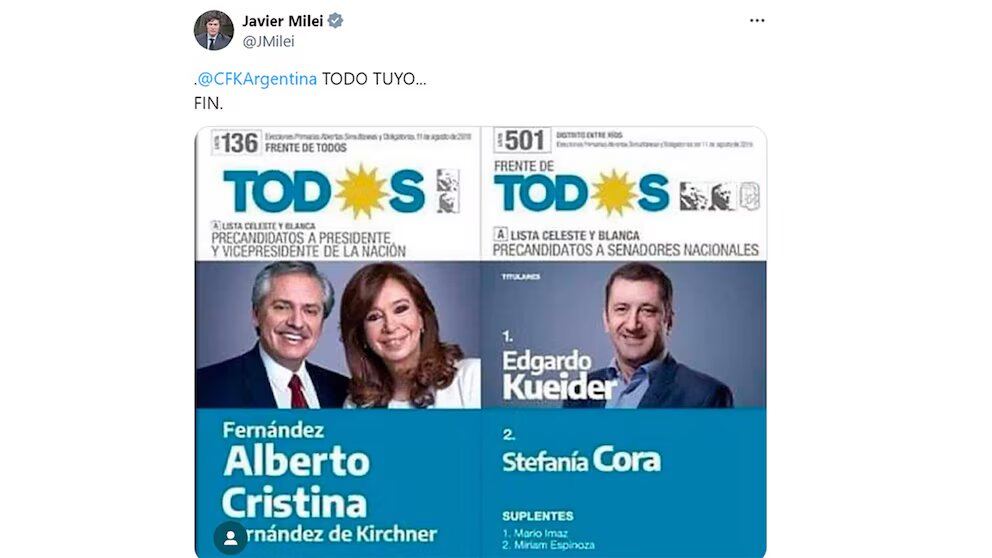 “Lo de Kueider es sin dudas un bochorno que merece recibir un castigo ejemplar, aunque al kirchnerismo lo único que le importa es quedarse con su banca (sí, Kueider entró en la boleta de Cristina) y así entorpecer la tarea de nuestro Gobierno”, señaló la vicepresidenta Victoria Villarruel en la previa, cuando hizo la convocatoria formal.