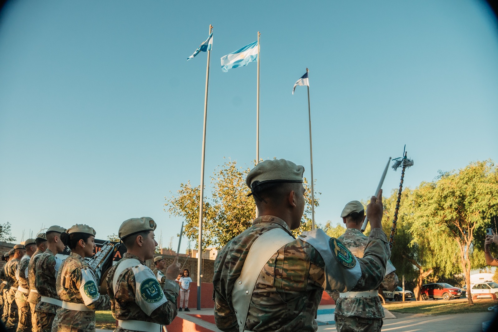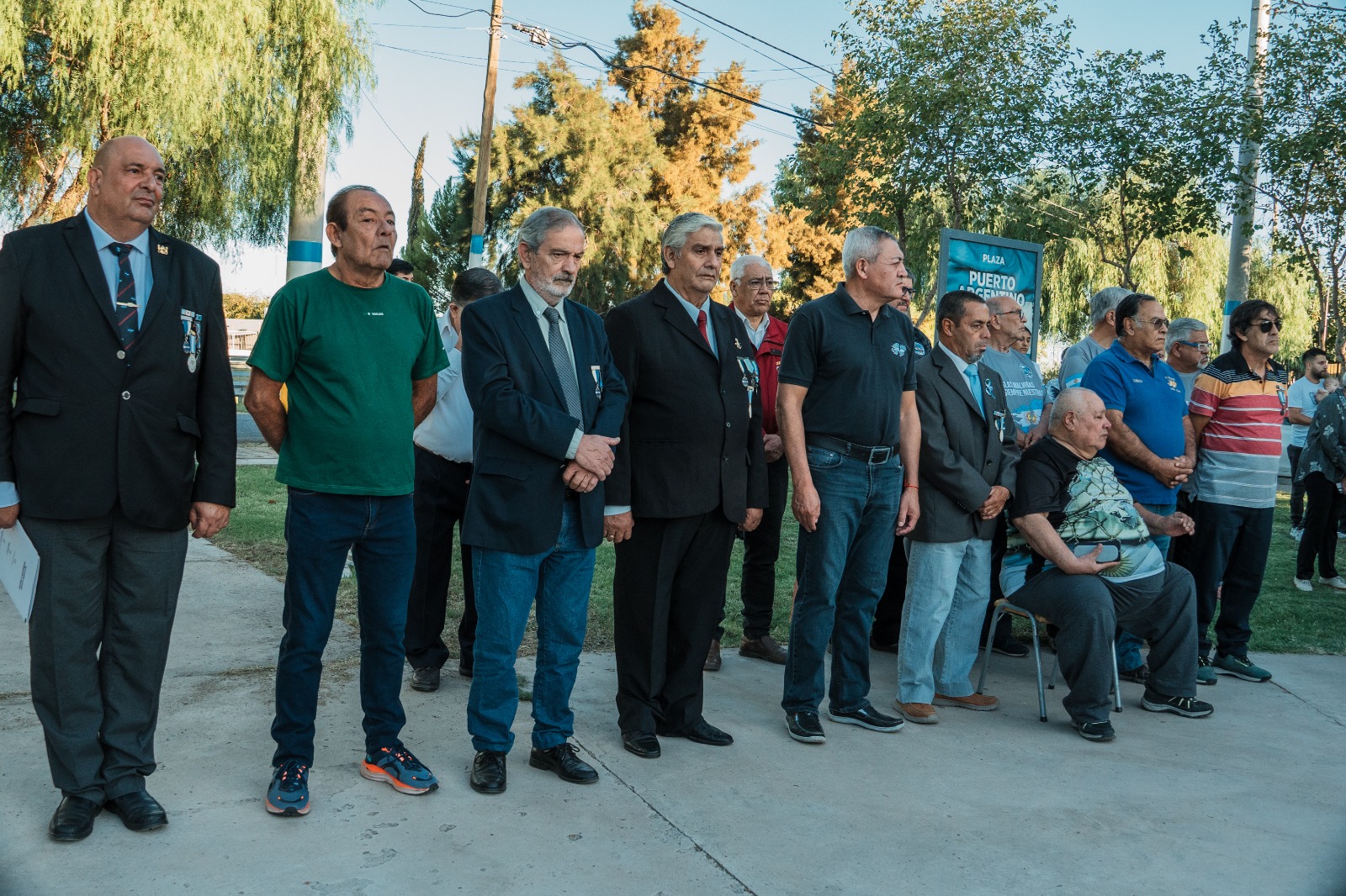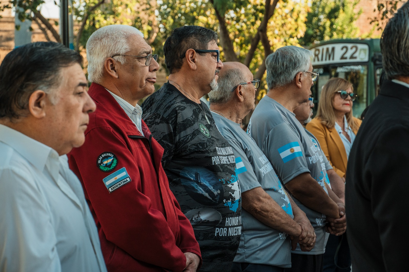 La ceremonia, que se llevó a cabo en la Plaza Puerto Argentino del Barrio de los Héroes Sanjuaninos de Malvinas. La Banda de Música del RIM 22 “El Tambolar” fue la encargada de darle solemnidad al acto que contó con la participación de vecinos y familiares de los ex combatientes, quienes se reunieron para recordar a los héroes de la guerra y reafirmar el compromiso con la soberanía argentina sobre las Islas Malvinas.