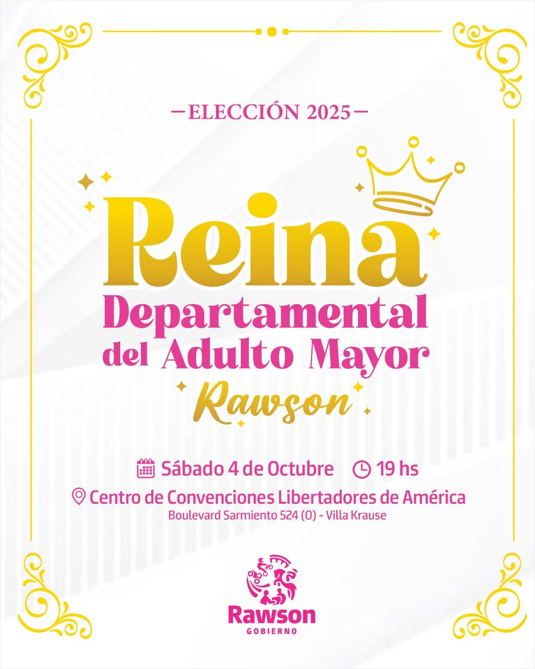 El próximo sábado 04 de octubre, el departamento de Rawson vivirá una jornada especial con la elección de su reina departamental del Adulto Mayor, en un evento que contará con la participación de 13 centros de jubilados locales.