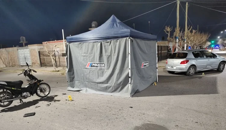 El siniestro ocurrió alrededor de las 21 horas, cuando un automóvil Peugeot 307, conducido por un hombre de apellido Palacio, de 46 años, circulaba por Perona en sentido oeste. Al intentar girar hacia la izquierda por calle Rivadavia, impactó de frente contra una motocicleta Motomel Blitz 110 cc, que era conducida por Pérez y se desplazaba en sentido contrario.