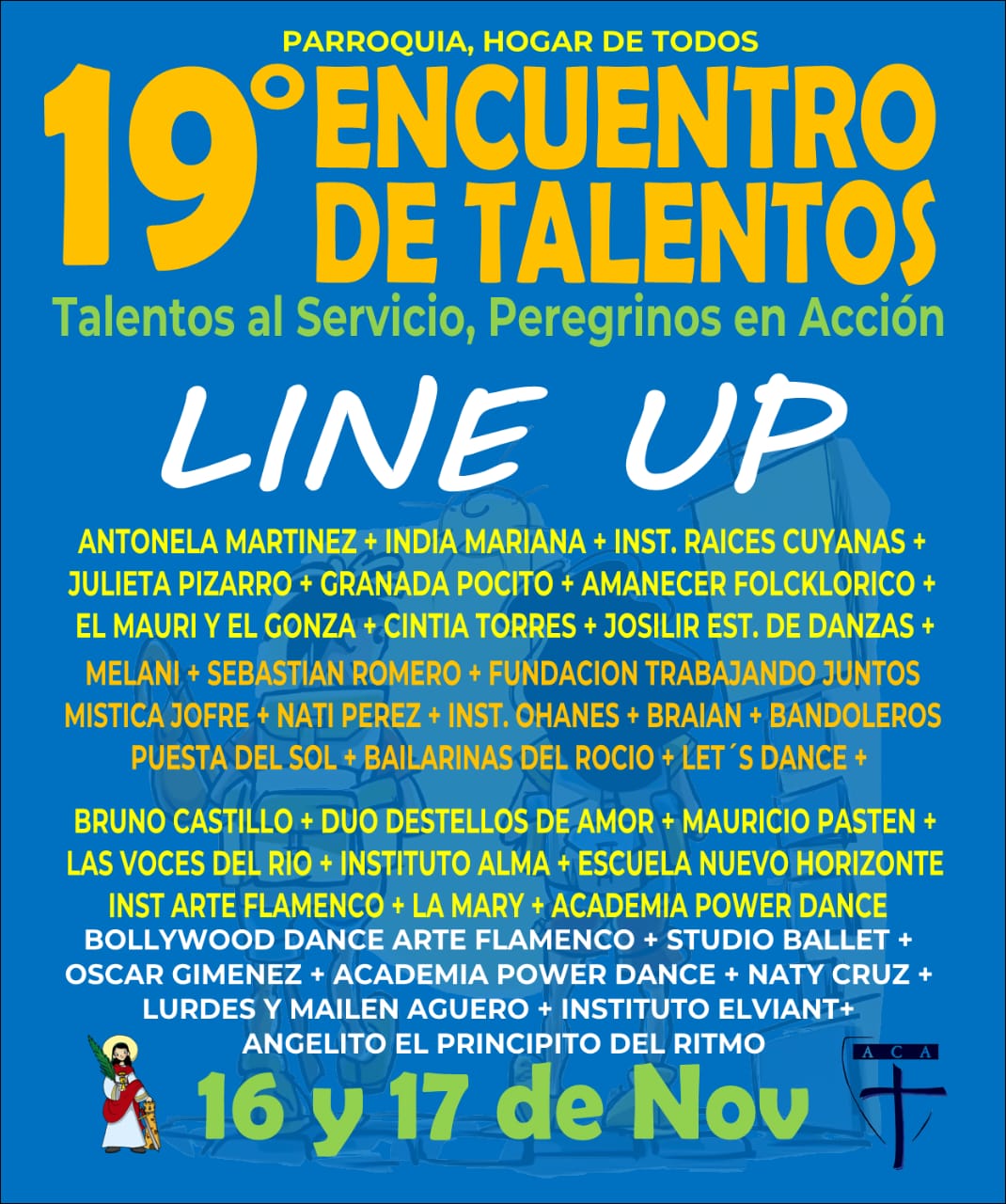 El próximo 16 y 17 de noviembre se realizará el 19° Encuentro de Talentos en la Parroquia de Santa Bárbara en Pocito, bajo el lema "Talentos al Servicio, Peregrinos en Acción".