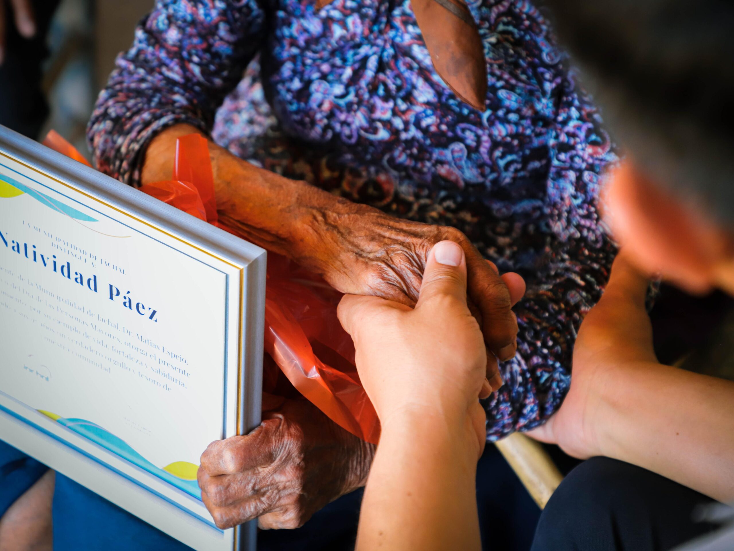En el marco del Mes del Adulto Mayor, el intendente Matías Espejo junto al Presidente de HCD, Héctor Sánchez y el Coordinador de Gabinete, Aristobulo Tejada visitó la localidad de Mogna con el objetivo de reconocer y poner en valor la trayectoria de dos mujeres que forman parte del acervo cultural de nuestro departamento: Rita Paez de 95 años y Natividad Paez de 97 años.