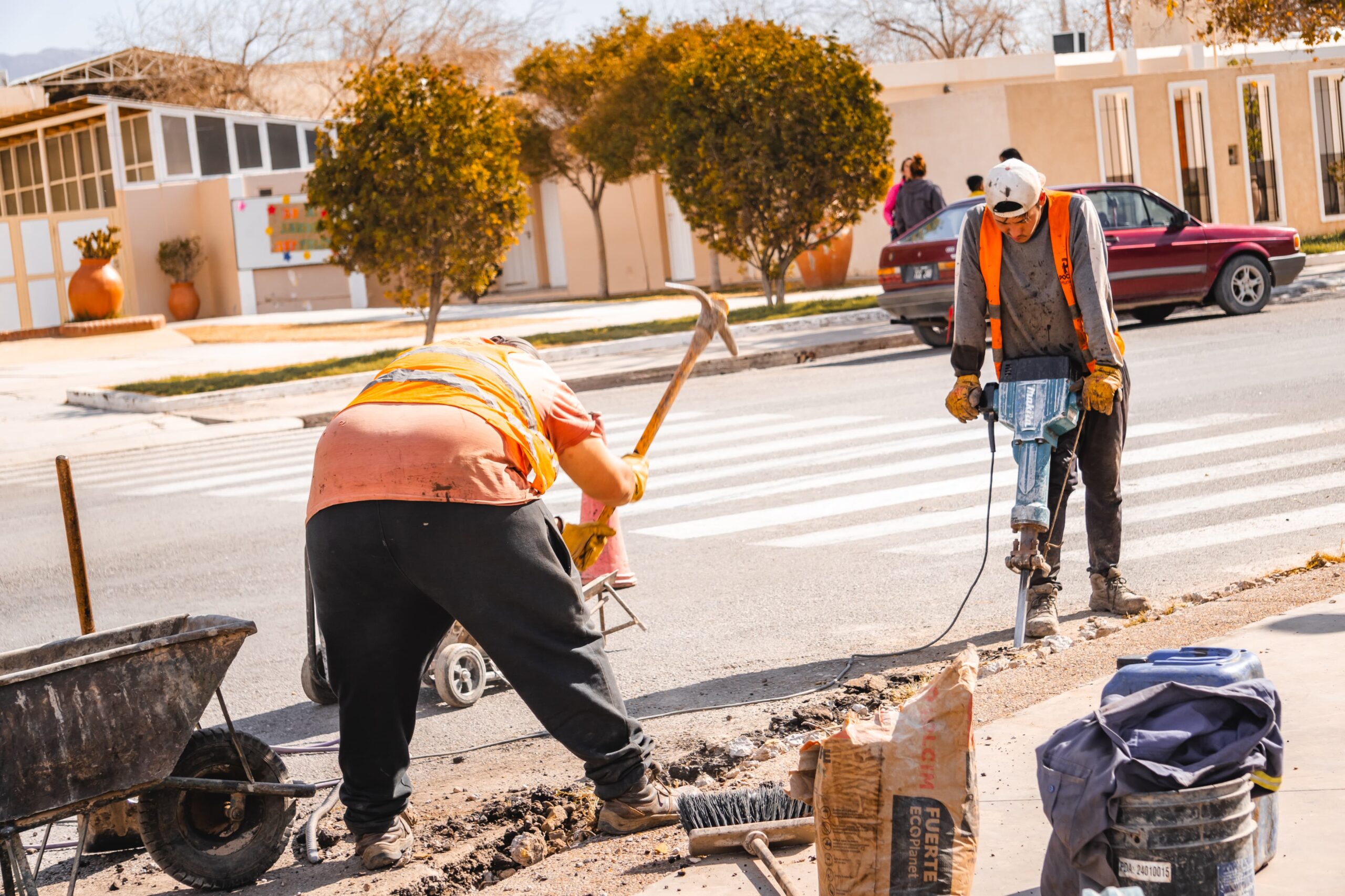 Una de las obras que se están llevando a cabo es el relleno de la fuente que rodeaba el escenario ubicado en el centro de la plaza, la principal del departamento.