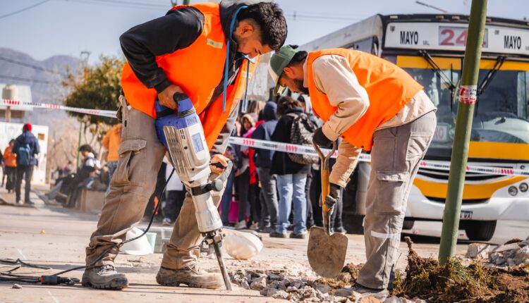 Una de las obras que se están llevando a cabo es el relleno de la fuente que rodeaba el escenario ubicado en el centro de la plaza, la principal del departamento.