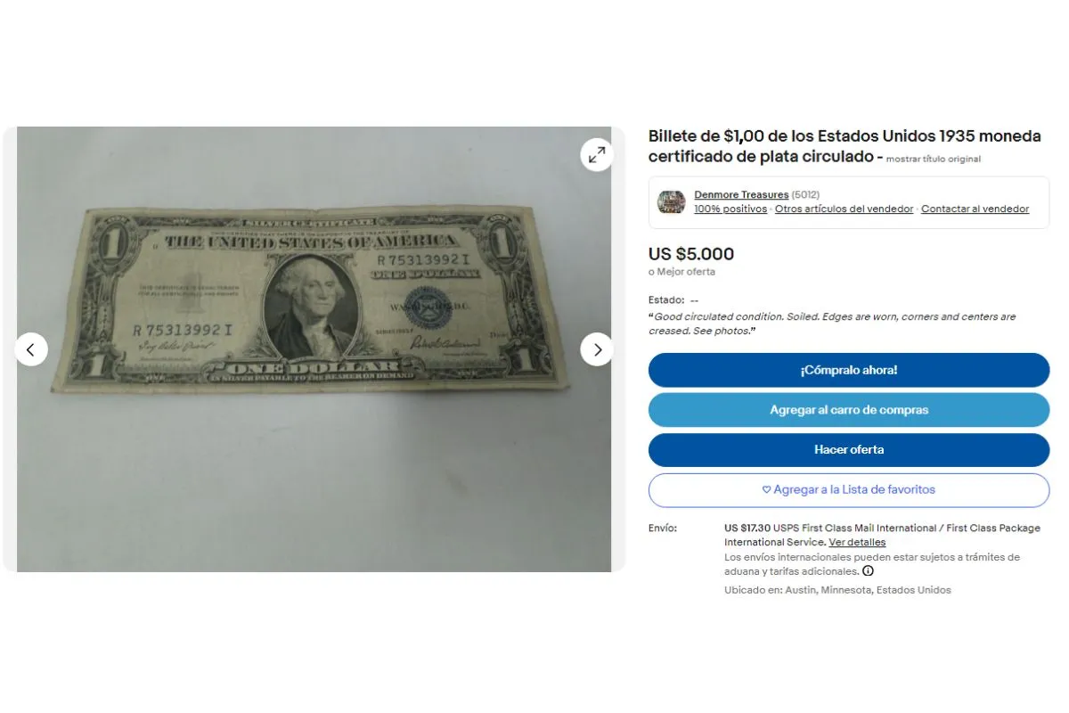 Un factor importante que interviene en este comercio de billetes y monedas es internet que permite el comercio online donde aparecen ejemplares variados. Sin embargo, el que más llamó la atención fue el billete de 1 dólar y su diseño, que determinó su precio de venta por 5 mil dólares. De forma precisa, este ejemplar de 1 dólar presentó una leyenda particular en uno de sus costados, junto con otras características que la hacen única.