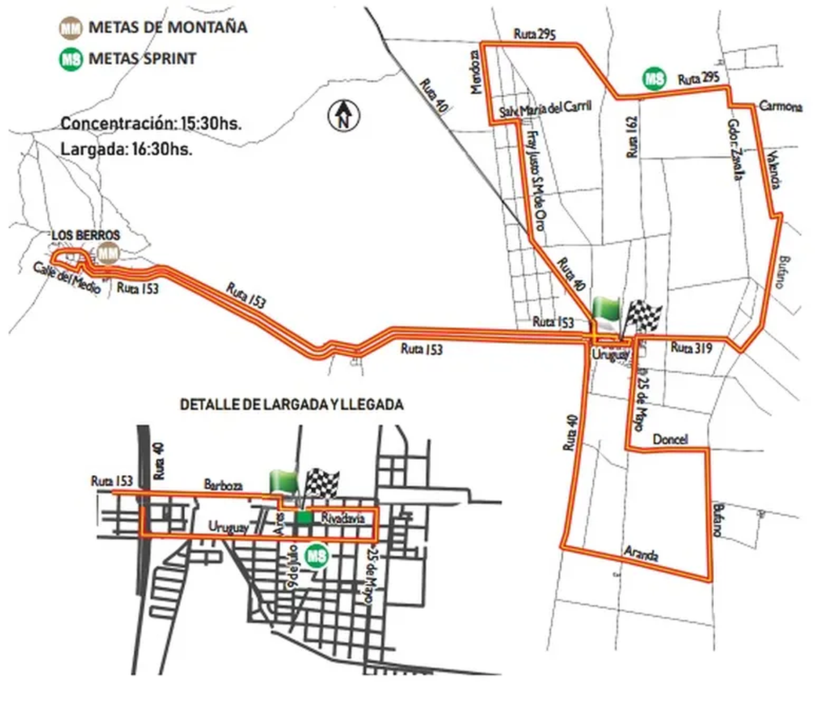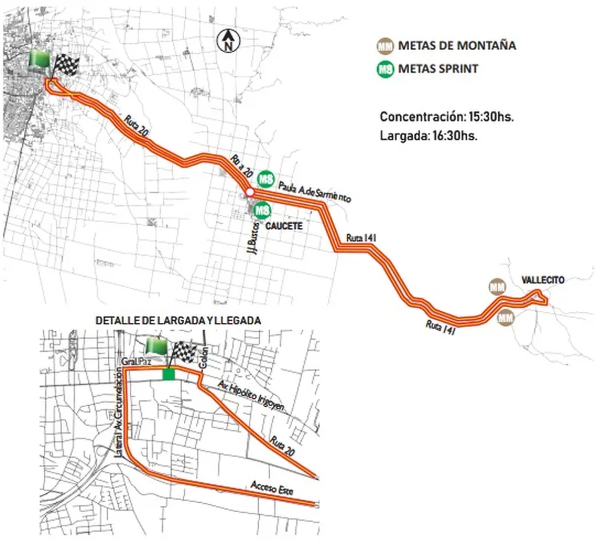 Largada: 16.30 horas en calle Rivadavia y 9 de Julio frente a la plaza departamental del departamento Sarmiento
