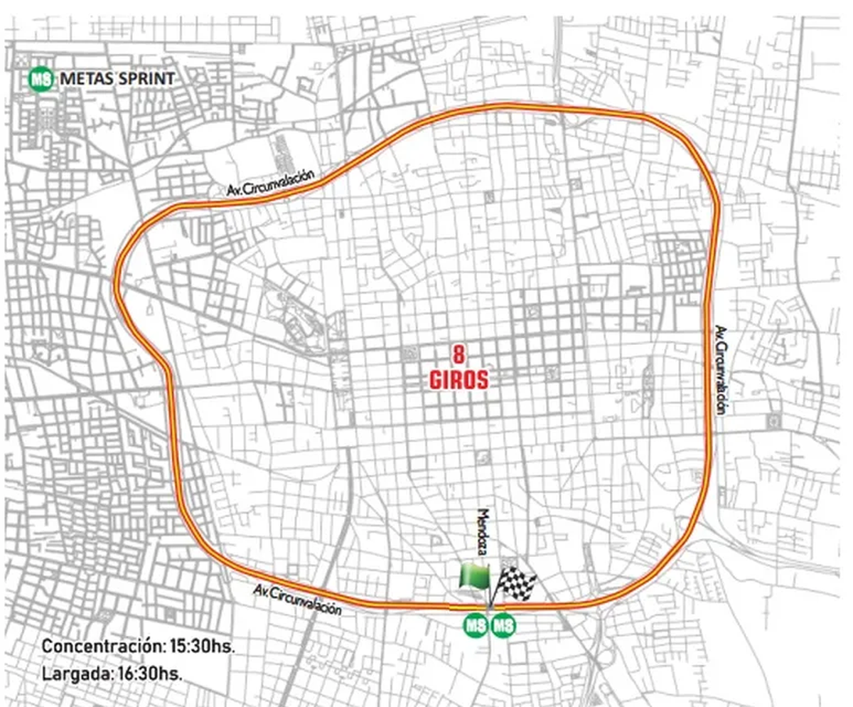Largada: 16.30 horas en Avenida Circunvalación y calle Mendoza