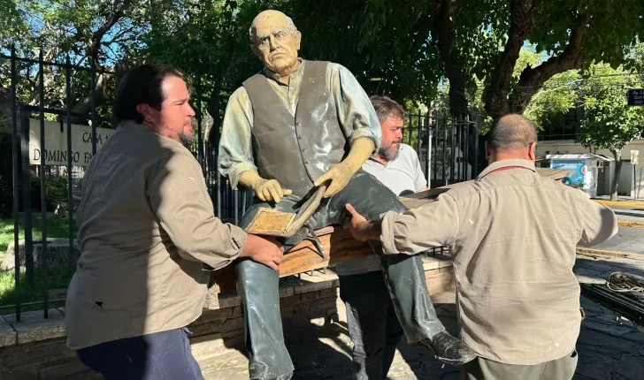 Retiran la escultura de Sarmiento para su restauración: estará lista en dos semanas