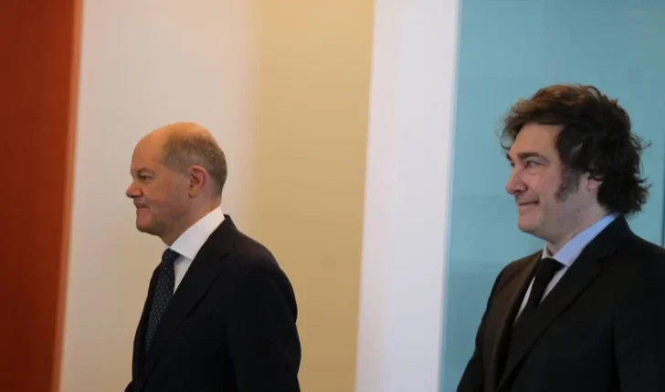 En Berlín, el presidente argentino y el canciller alemán mantuvieron una reunión que comenzó al mediodía. El encuentro se desarrolló en un formato reducido, sin honores militares ni rueda de prensa. “Es una reunión de trabajo muy corta, por deseo del presidente argentino”, explicó el portavoz del Ejecutivo germano, Steffen Hebestreit.