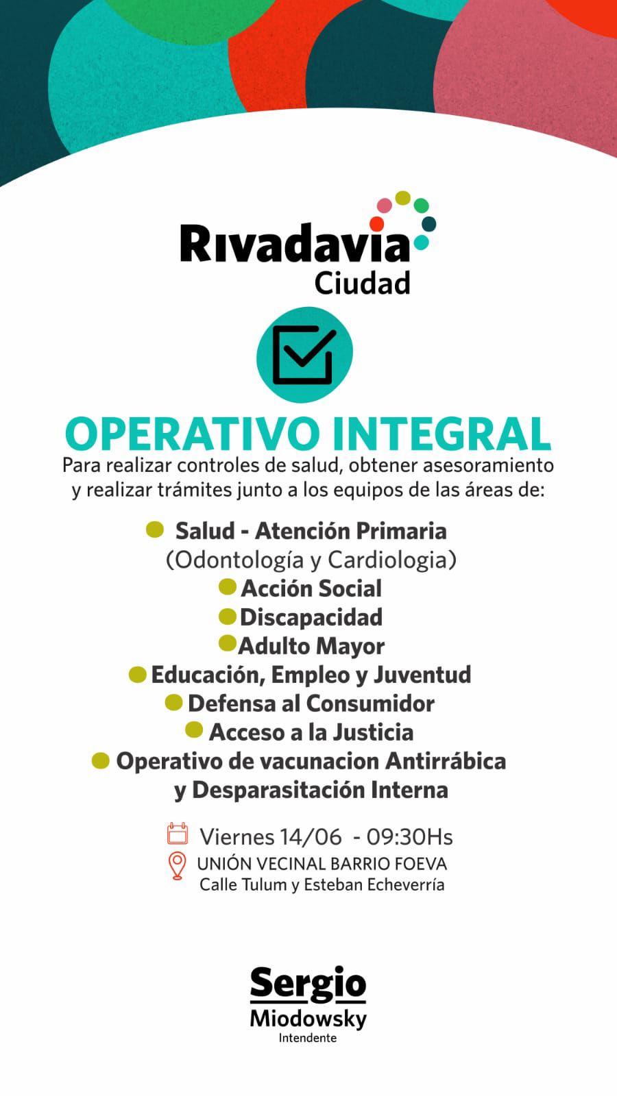 Rivadavia Ciudad copará el barrio FOEVA con su Operativo Integral de Abordaje en su sexta entrega