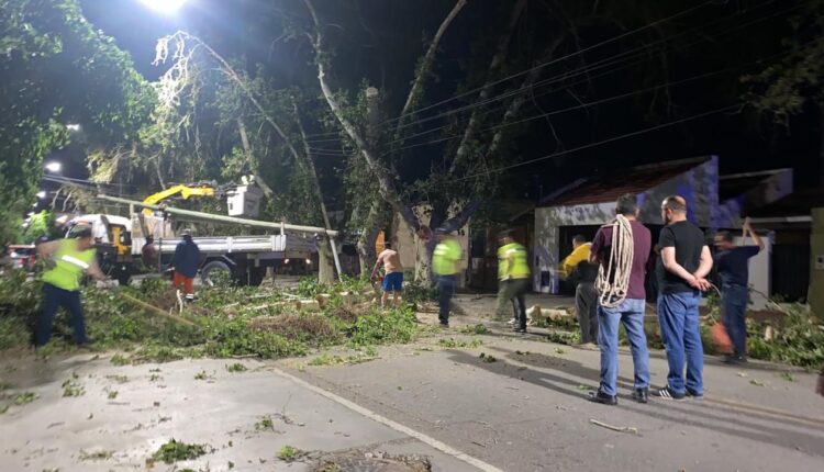 Este lunes desde las 15 y hasta pasadas las 23 hs, los agentes municipales de Servicios y Ambiente, montaron un trabajo integral de despeje de espacios públicos tras las ráfagas de más de 70 kms/h que azotaron la provincia.