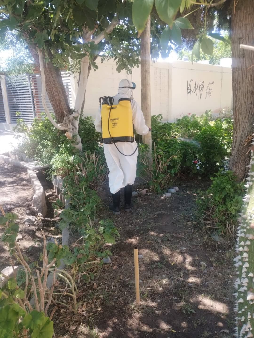 La Dirección de Salud, encargadas de llevar adelante las tareas de fumigación, utilizando técnicas adecuadas para proteger a las familias del departamento.