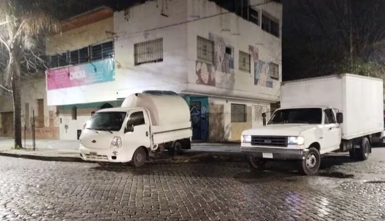 Los dos camiones usadosAl llegar al lugar, los agentes encontraron dos vehículos en marcha, una camioneta Ford F100 con un acoplado y una camioneta Kia blanca con un tanque cisterna, ambas con las llaves puestas. Junto a los vehículos, estaban O.D. y G.S., de 49 y 45 años, quienes se identificaron como empleados de seguridad de una empresa contratada por Telefónica para vigilar el robo de cables subterráneos.
