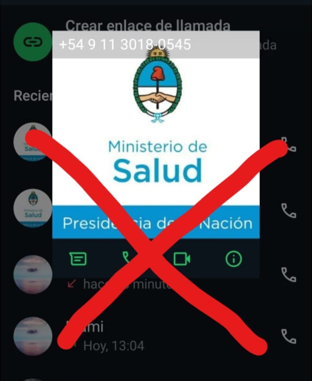 Desde la cartera sanitaria provincial alertamos a la ciudadanía para no ingresar a links que puedan llevar a registrar los números de teléfonos y luego ser hackeados.