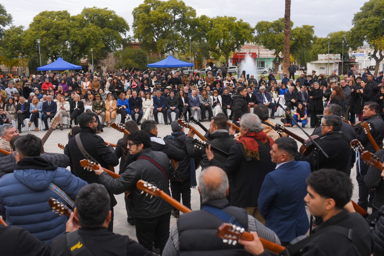 La jornada tuvo lugar en la Plaza Juan Jufré, lugar histórico donde comenzó a escribirse la historia de la provincia. Desde temprano, la ceremonia estuvo colmada de símbolos patrióticos, reconocimientos y emoción.