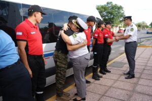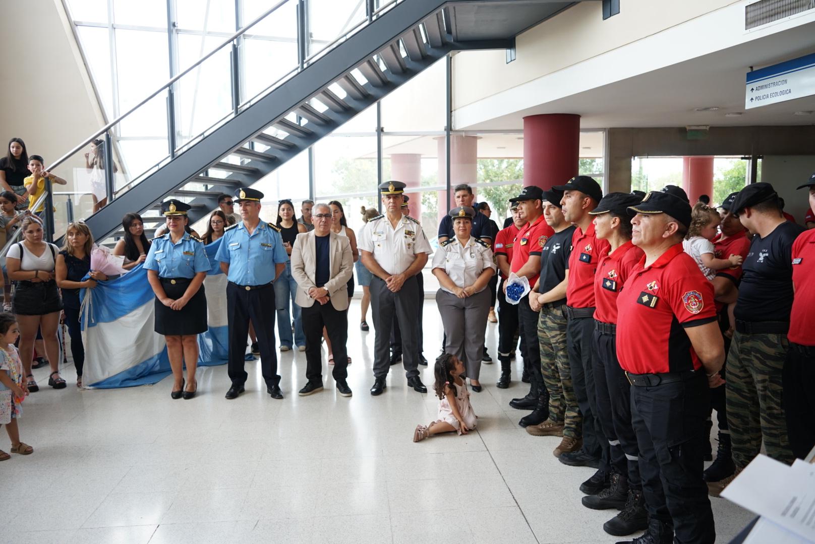A su regreso, los efectivos fueron recibidos por sus familiares y el secretario de Estado de Seguridad y Orden Público, Enrique Delgado, el jefe de Policía, Néstor Álvarez, el director del Servicio Penitenciario Provincial, Carlos Suárez, la subjefa de Policía, Cintia Álamo, y la subdirectora del SPP, Norma Iragorre.