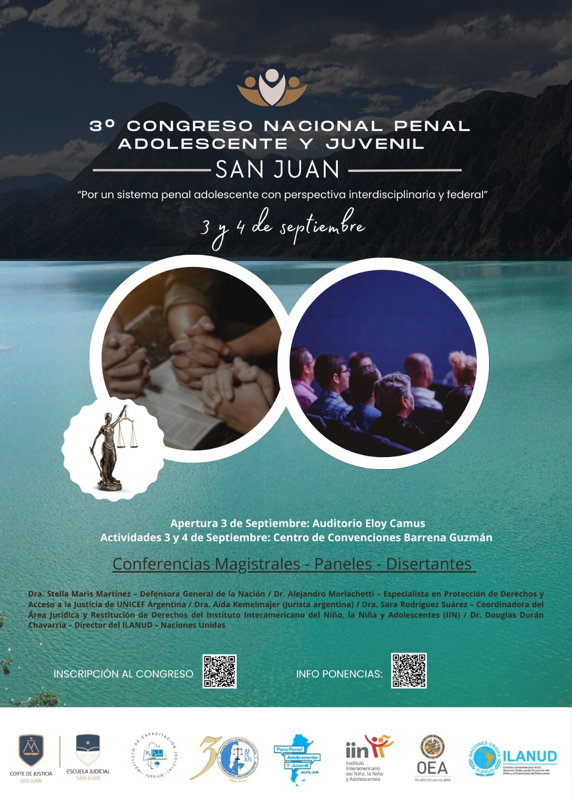 El encuentro está organizado por la Corte de Justicia de San Juan, a través de la Escuela Judicial, junto al Foro Penal Adolescente y Juvenil (integrado por defensores, fiscales y jueces de la especialidad) de la Junta Federal de Cortes y Superiores Tribunales de Justicia de las Provincias Argentinas y Ciudad Autónoma de Buenos Aires (Jufejus) y cuenta con el auspicio del Instituto Interamericano del Niño, la Niña y Adolescentes de la OEA y del Instituto Latinoamericano de
