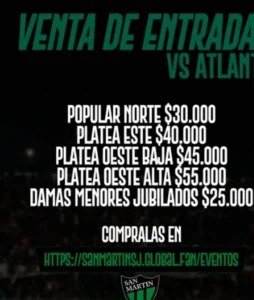 El Verdinegro habilitó nuevamente la venta de tickets para el público general de cara al duelo ante Atlanta por la Primera Nacional. Los precios y cómo conseguirlas.