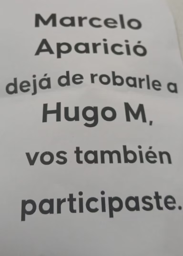 El volante contra Marcelo Aparicio, del Sindicato de Camioneros