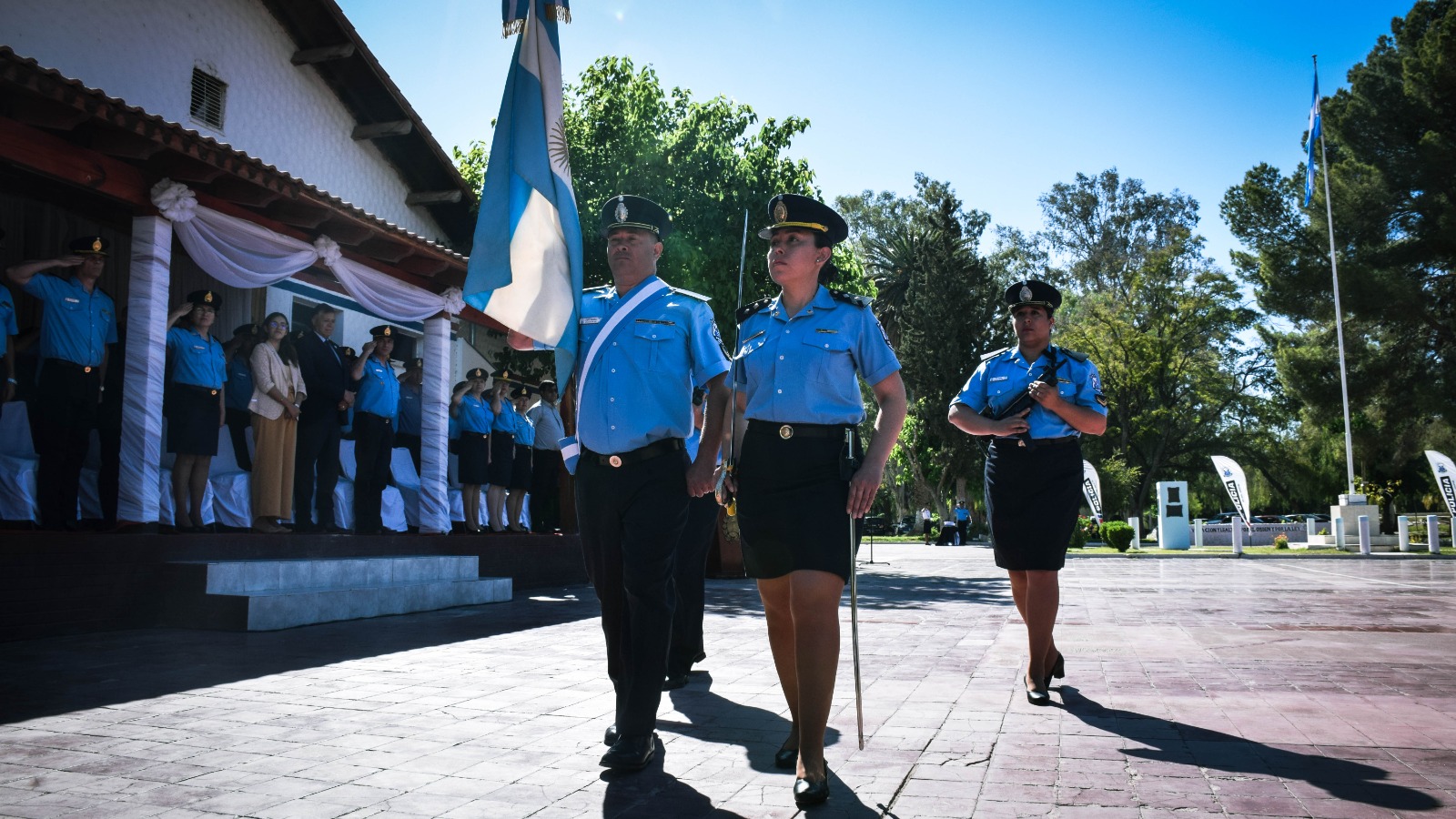 En un acto, la Escuela Superior Presidente Domingo Faustino Sarmiento y la Escuela de Suboficiales y Agentes Dr. Narciso Laprida de la Policía de San Juan designaron sus nuevos Cuerpos de Bandera.