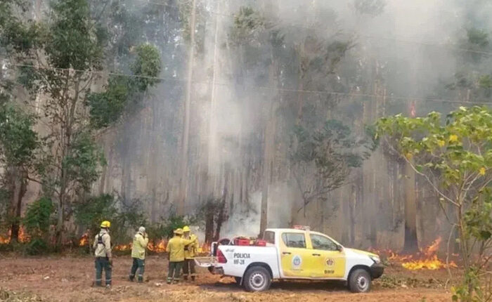 En la localidad de La Cruz, en la zona de los Tres Cerros, se registró un incendio forestal sobre una plantación de pino. Esta especie, al no ser nativa, tiene características que fomentan el aceleramiento del fuego. Allí trabajan en conjunto bomberos voluntarios y un helicóptero del Sistema nacional de manejo del fuego. Según el coordinador del Comando de Emergencia, Bruno Lovinson, “ya fueron afectadas más de 20 mil hectáreas”.