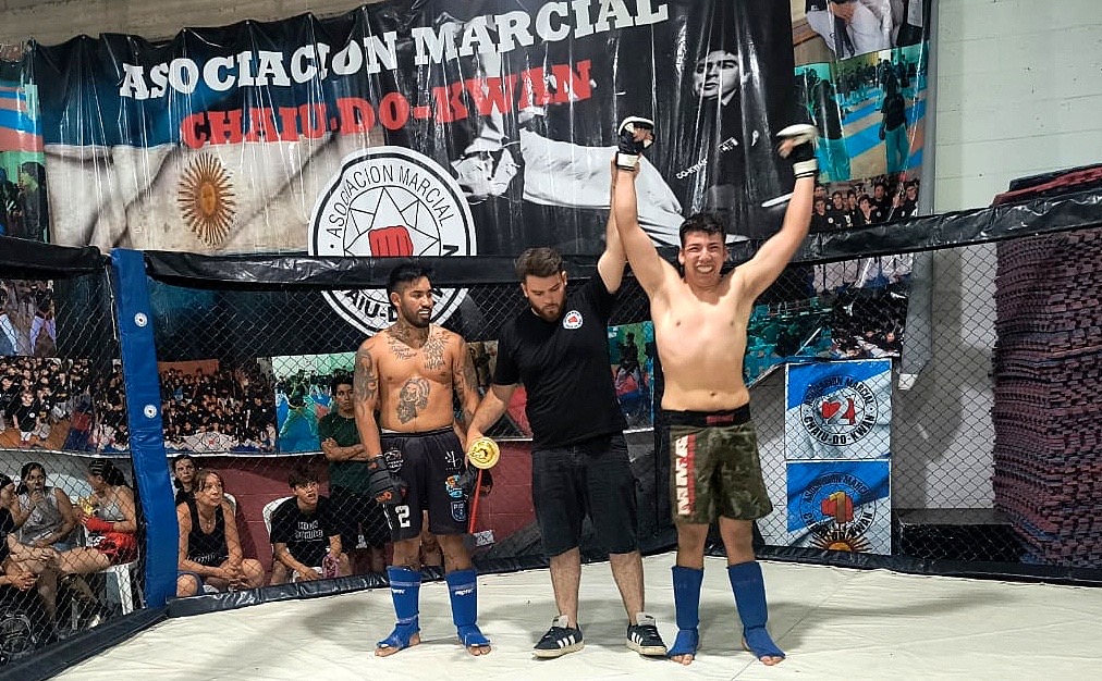 El cierre de la noche llegó con la modalidad MMA en jaula, donde Mateo Valle se consagró ganador por nocaut técnico, a los dos minutos del primer round, frente a Julio Rojas, desatando la ovación del público.